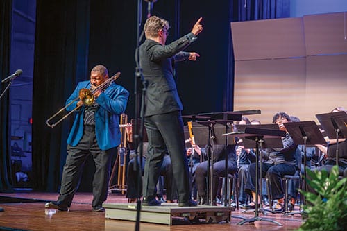 Professor Wycliffe Gordon, Director of Jazz Studies at Augusta University, performing with the Wind Ensemble,