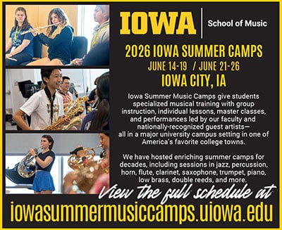 IU Summer Music Clinic, Bloomington. The IU Summer Music Clinic is an intensive band and orchestra experience for intermediate to advanced string, wind, and percussion students. Students currently in grades 8-12 will learn, rehearse, and perform a full ensemble program with top-notch conductors. In addition to full orchestra, concert bands, and (auditioned) jazz bands, students have sectionals, and a daily chamber ensemble or elective class such as conducting, composition, jazz band, music theory, or leadership. Instruments accepted: violin, viola, cello, double bass, flute, oboe, bassoon, clarinet, bass clarinet; alto, tenor, and baritone sax; horn, trumpet, trombone, euphonium, tuba, percussion.