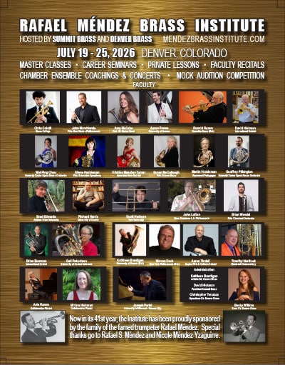 Held at the University of Denver, this is an intensive, week-long educational experience focused on taking your playing to the next level. The institute includes: career seminars, master classes, chamber ensemble coachings, competitions, and incredible faculty recitals and concerts. RMBI is led by some of the finest brass musicians in the world – the members of Summit Brass. Scholarships up to $500 available.